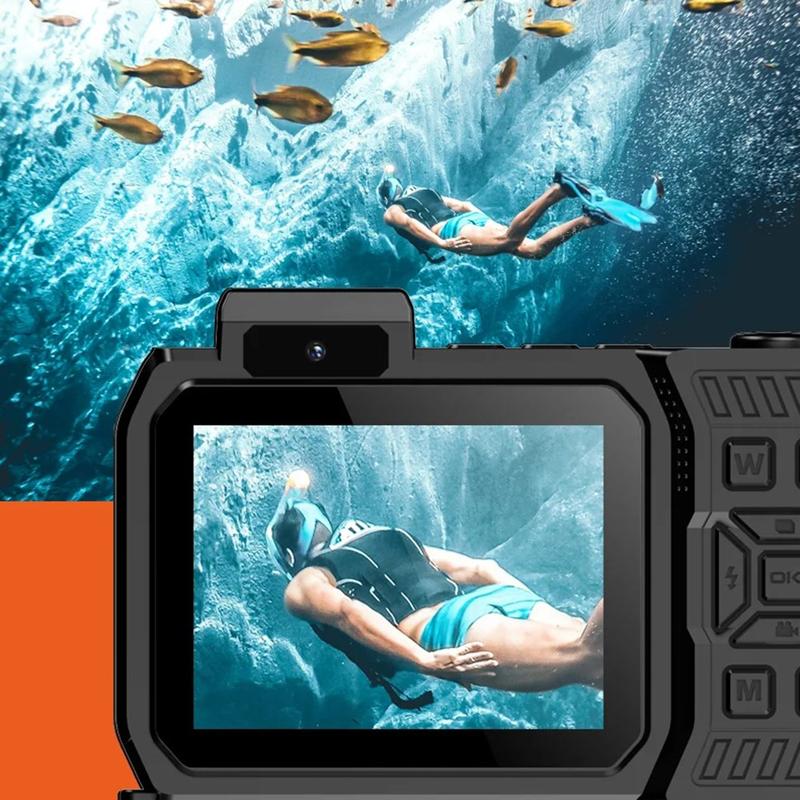 D50 vanntett actionkamera med to skjermer - IP68 10 m, 2500 mAh, antiskjelving, 20 filtre, inkluderer 32GB TF-kort