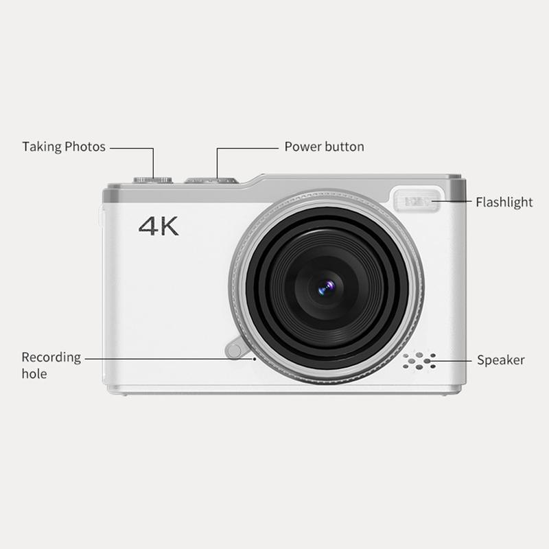D72 Bærbart digitalkamera 4K - 2,4" CCD-kamera med 16X zoom, autofokus, 180-graders flippskjerm og 32GB kort
