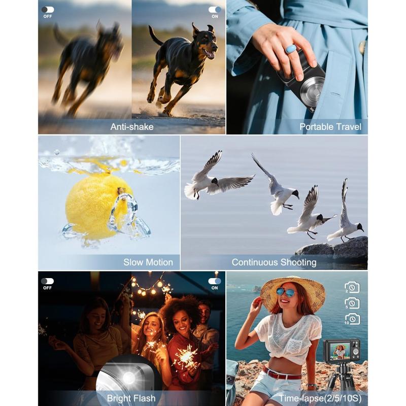 Minidigitalkameraet DC309X kombinerer to høyoppløselige objektiver, 6X optisk zoom og avansert stabilisering for å levere eksepsjonelle bilder og videoer i en kompakt, bærbar design. Kameraet er utstyrt med en profesjonell GC8613 800W-frontsensor og et Sony IMX214 13MP selfie-objektiv på baksiden, noe som gir skarpe detaljer i landskapsbilder og perfekt klarhet for selvportretter. Den 2,8-tommers IPS HD-berøringsskjermen gir klar visning og intuitiv kontroll.