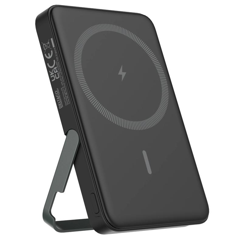 Deltaco 5000mAh magnetisk trådløs powerbank med stativ - svart