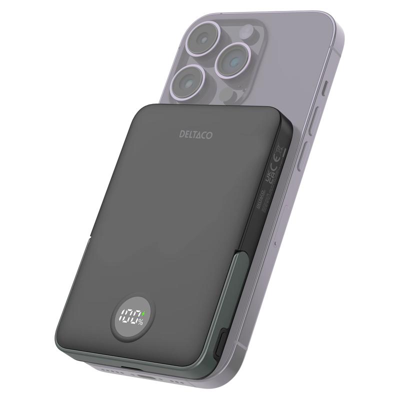 Deltaco 5000mAh magnetisk trådløs powerbank med stativ - PD 20 W USB-C bærbar lader