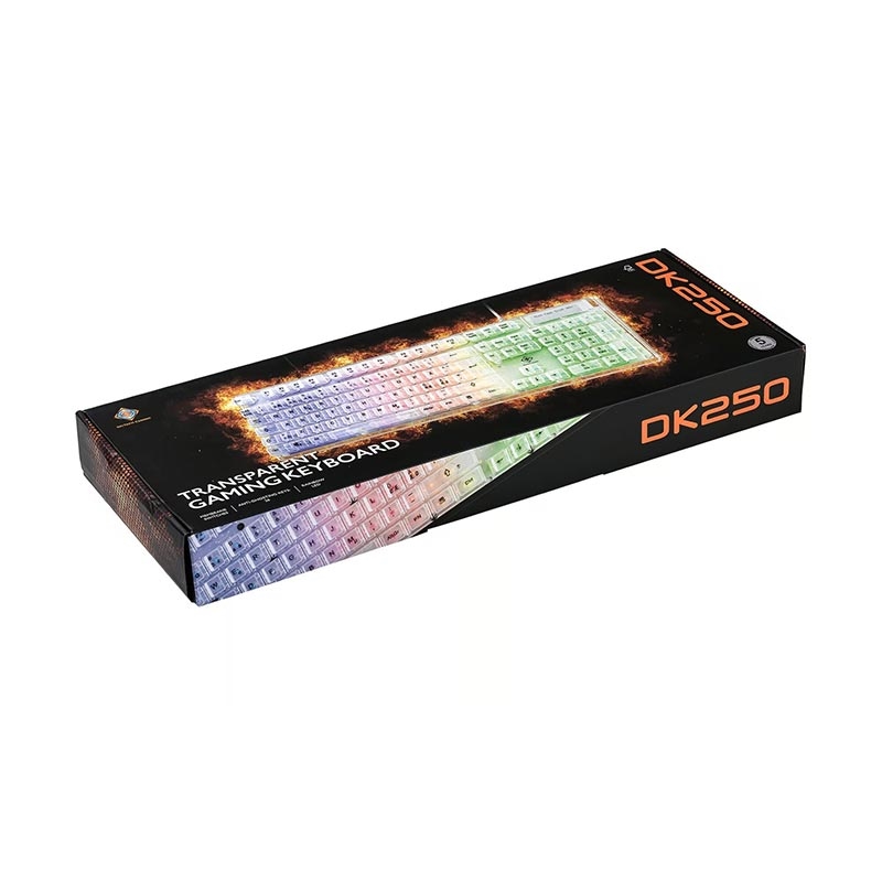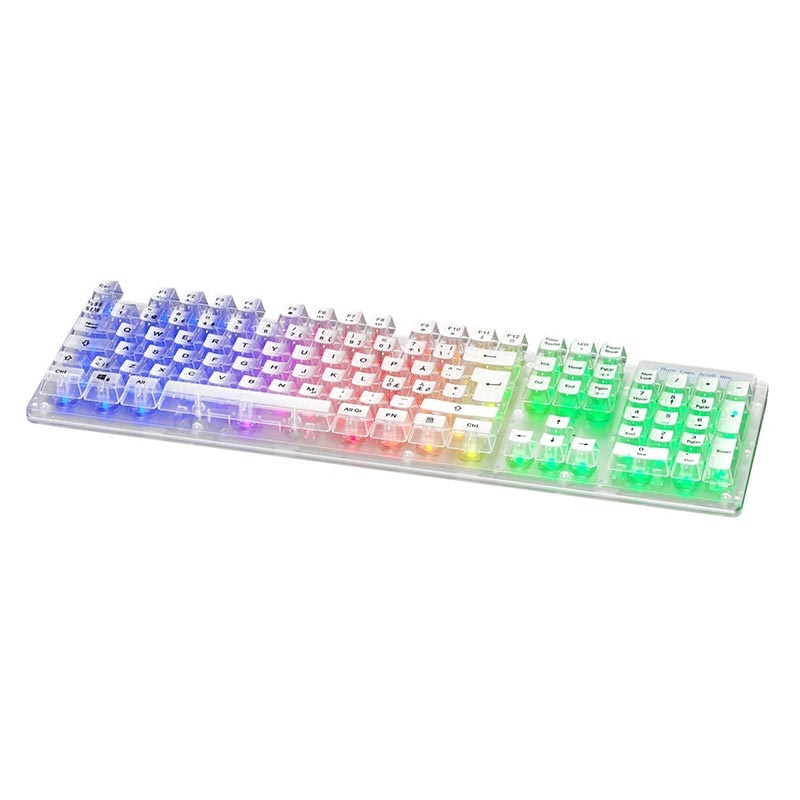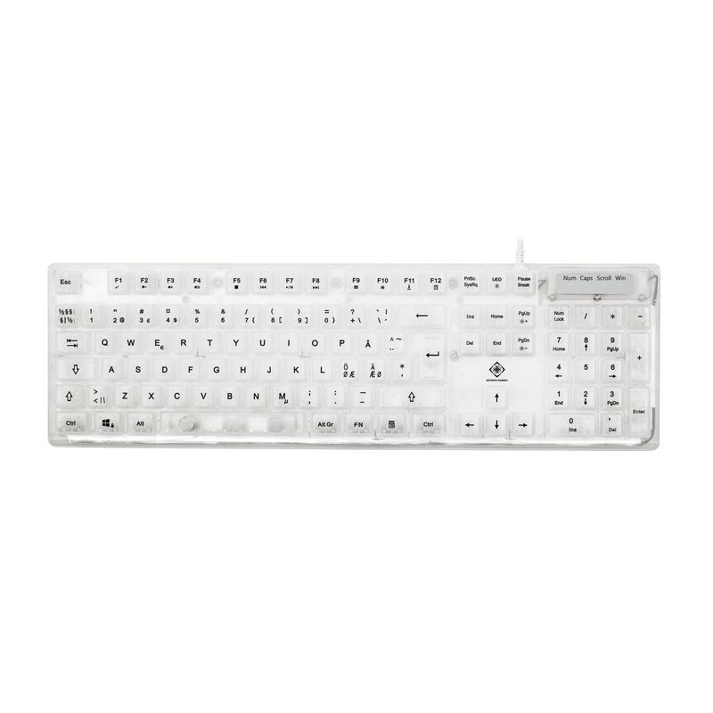 Deltaco DK250 gjennomsiktig spilltastatur med membranbrytere - nordisk layout, RGB-bakgrunnsbelyst