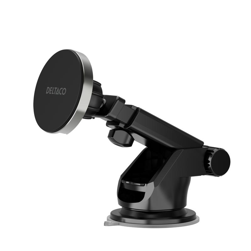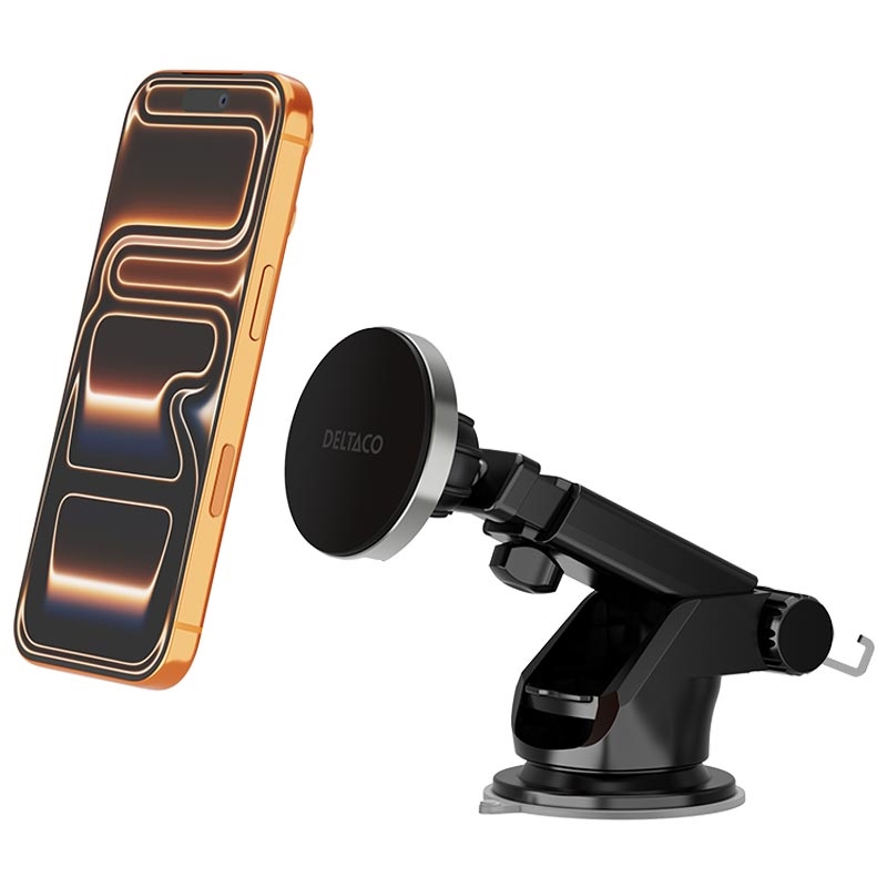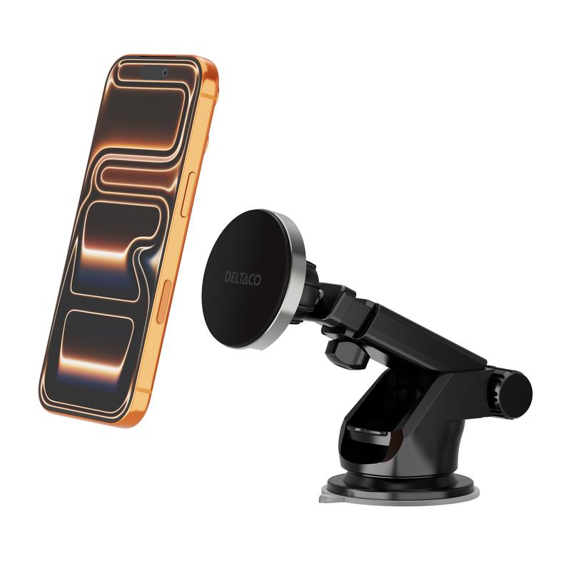 Deltaco avtakbar magnetisk trådløs billader - Qi2 15W telefonholder med ventilasjonsfeste og sugekopp