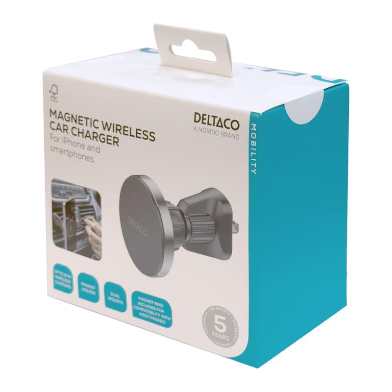 Hold telefonen ladet og lett synlig mens du kjører med den avtakbare trådløse billaderen fra Deltaco. Denne Qi2-kompatible laderen er designet for brukervennlighet og fleksibilitet, og gir opptil 15W trådløs lading for kompatible enheter, samtidig som den holder telefonen sikkert på plass med en innebygd magnet.