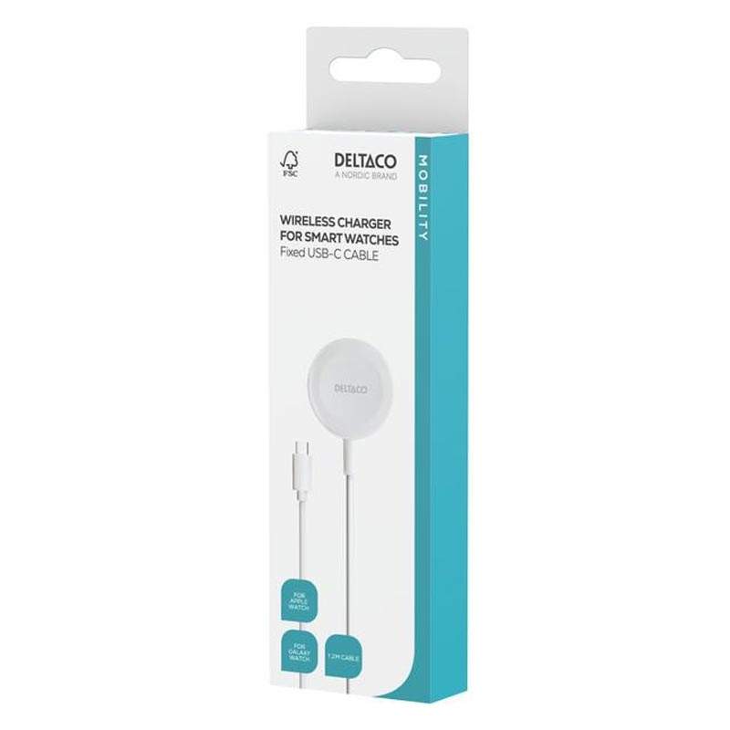 Deltaco magnetisk trådløs lader for Apple Watch/Galaxy Watch - med 1 m USB-C-kabel