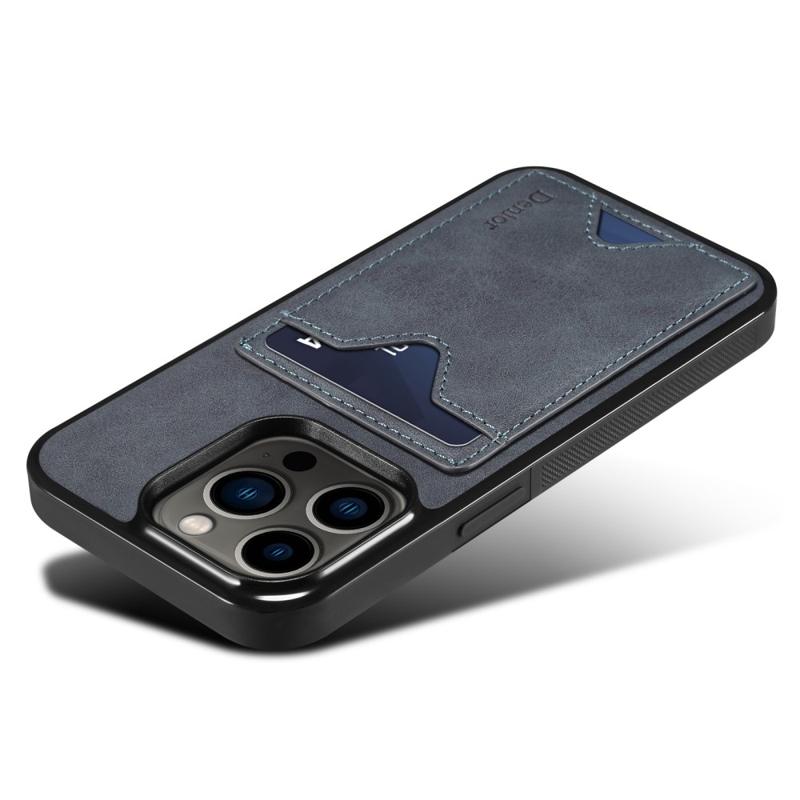 DENIOR For iPhone 14 Pro-kortholder Telefondeksel Anti-ripe PU-skinnbelagt TPU Kickstand-deksel