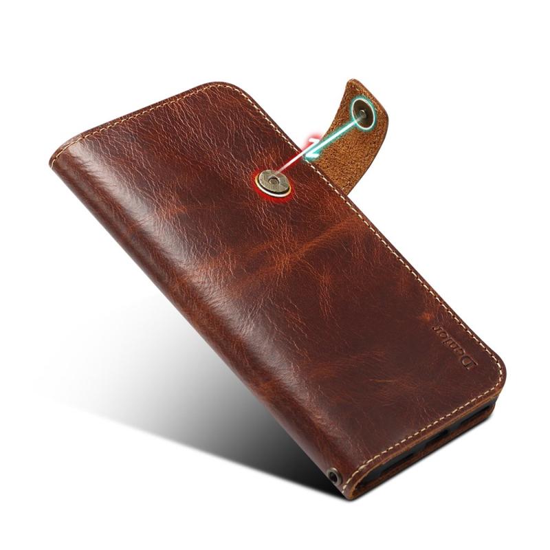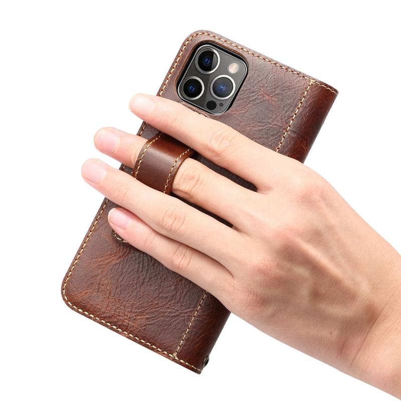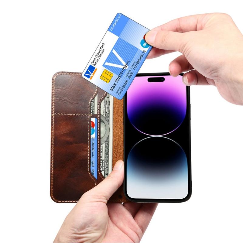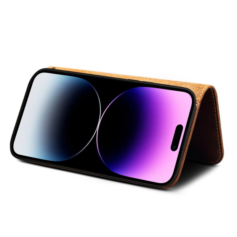 DENIOR Anti-Drop Deksel for iPhone 14 Pro Beskyttelsesdeksel i ekte lær Magnetlås Lommebok Deksel med stativ
