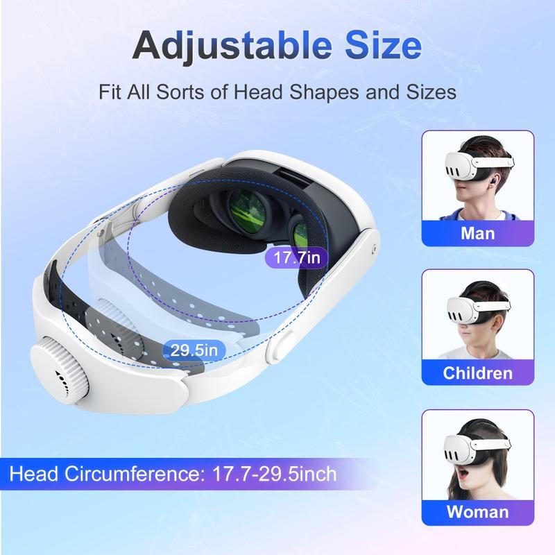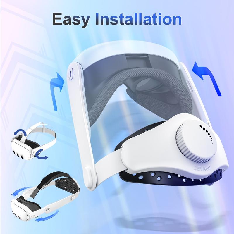 DEVASO hodestropp kompatibel med Meta Quest 3 VR-hodesett Justerbar stropp versjon 2.0, hvit