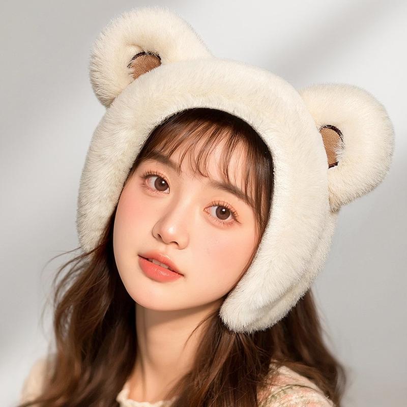 DEZ45 Søtt plysjbjørneøre vinterpannebånd - varmt vindtett hårbånd for kvinner