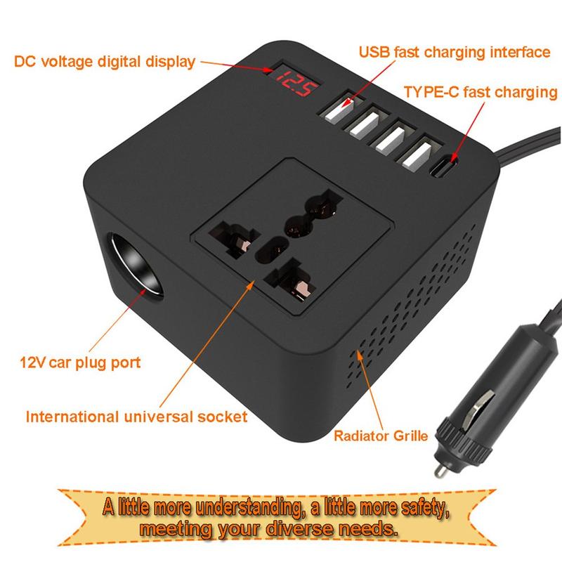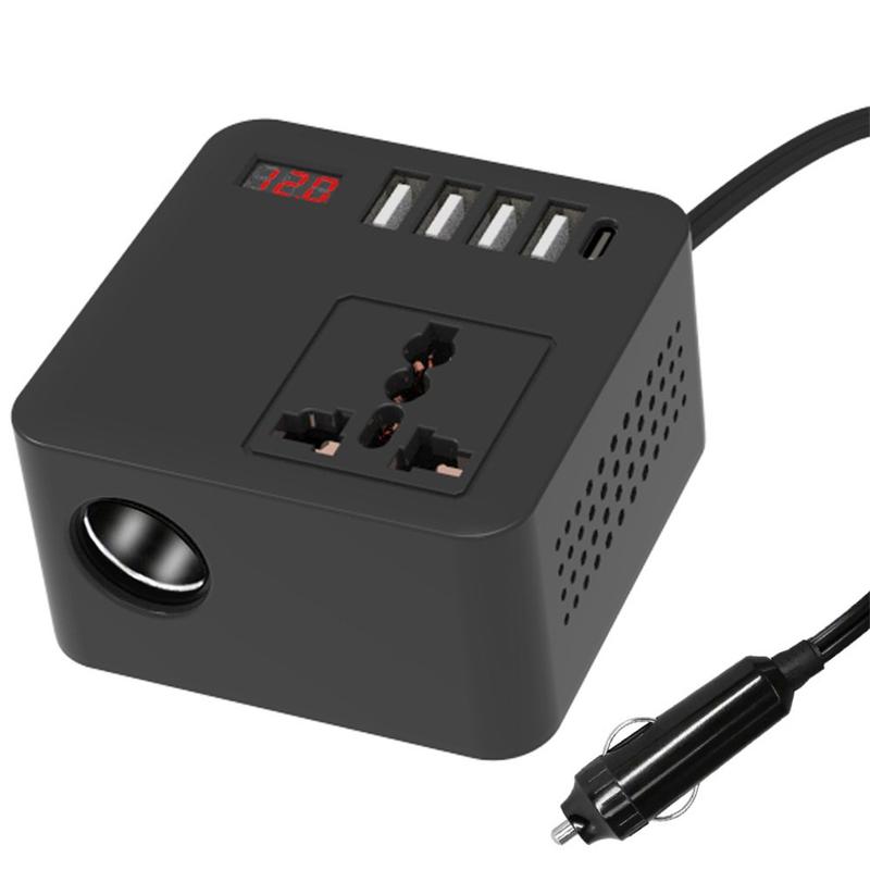 Digital skjerm bilomformer - 12 V/24 V likestrøm til 110 V/220 V vekselstrømomformer med USB-C, USB-A og vekselstrømuttak 150W