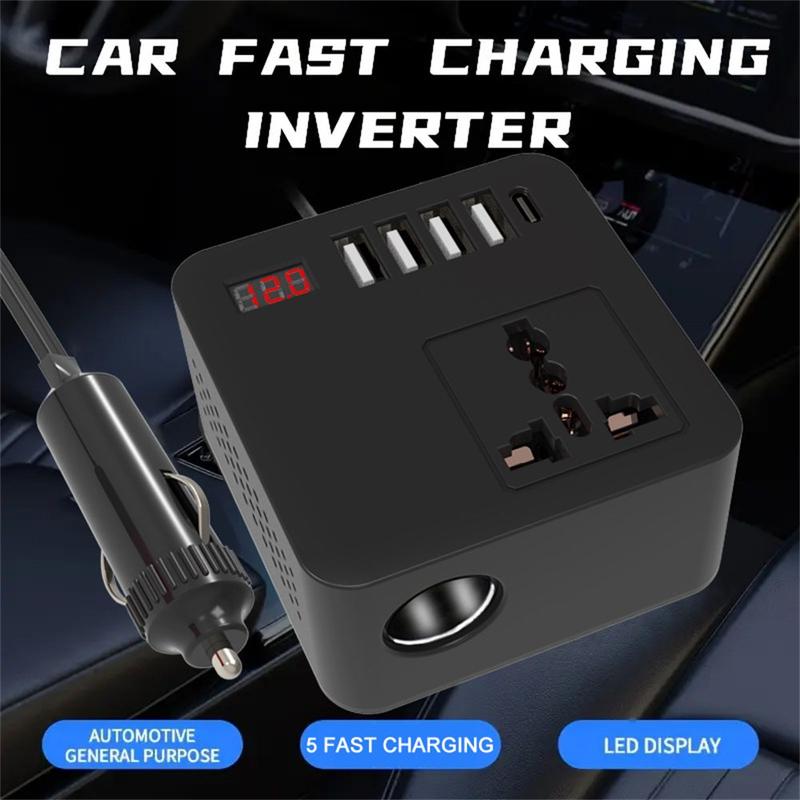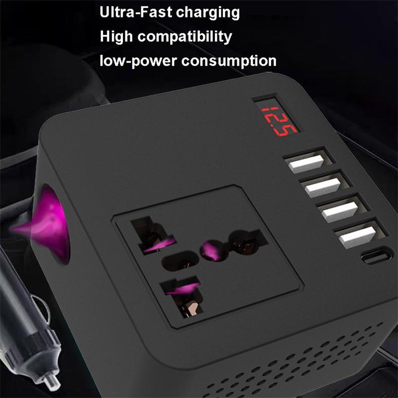 Digital Display Car Power Inverter tilbyr hurtiglading av flere enheter, intelligent kjøling og sikkerhet i en kompakt formfaktor. Enten du pendler eller camper utenfor strømnettet, er dette din alt-i-ett bærbare kraftstasjon.