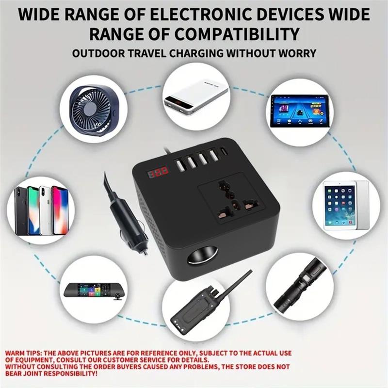 Perfekt for bilturer, bobiler, lastebilsjåfører og reisende som trenger pålitelig strøm til flere enheter - fra telefoner til små apparater - hvor som helst og når som helst.