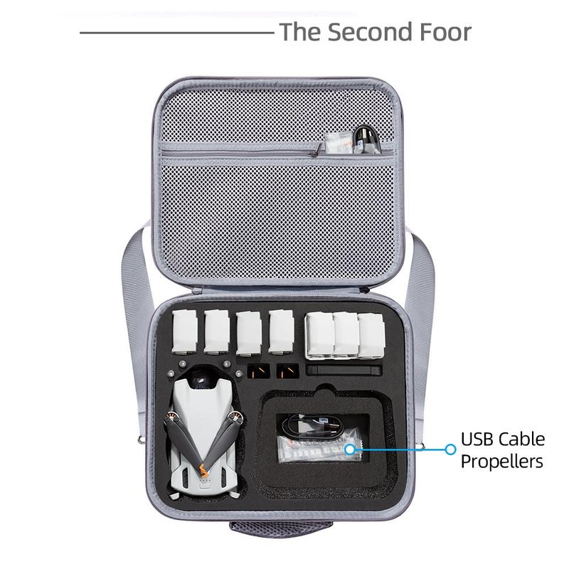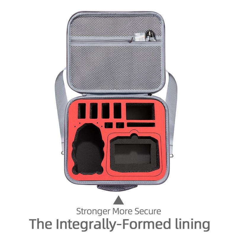 - Kompakt, men romslig: Til tross for sin kompakte størrelse har kofferten god lagringskapasitet, slik at du kan holde orden på dronen og tilbehøret ditt og ha det lett tilgjengelig.