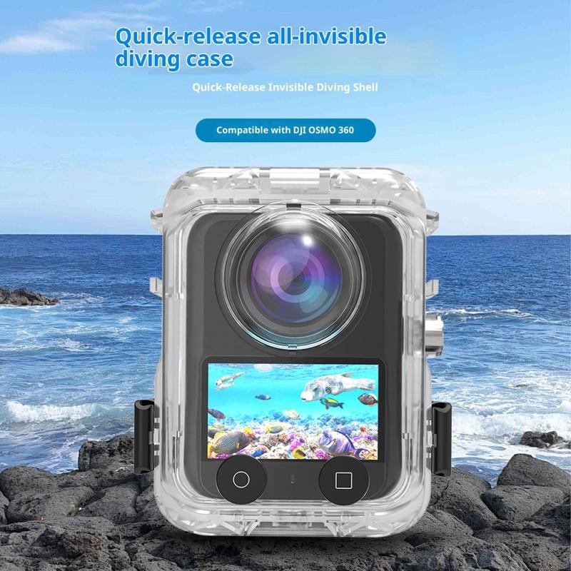 DJI Osmo 360 Action Camera vanntett etui - magnetisk hurtigutløsende 60m undervannsetui med 2-klørfeste