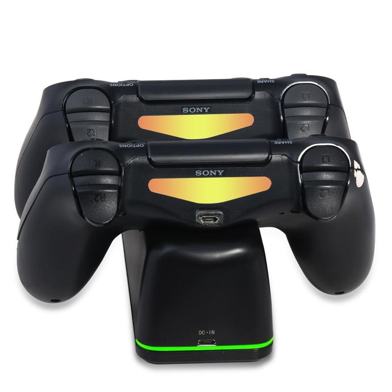 Integrerte Micro USB-adapterporter - gjør at du trygt kan oppbevare og lade to PS4-kontrollere samtidig uten å måtte koble dem til PS4-systemet. Produsert med overlegen ABS for styrke og holdbarhet. Med integrert beskyttelsesbrikke er den både sikker og praktisk. Med et nytt og vakkert utseende er den en pryd på skrivebordet ditt;