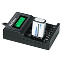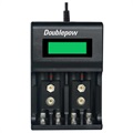 Doublepow DP-UK95 4-Slot Multifunksjonell Rask USB Lader til AA, AAA, 9V Oppladbare Batterier med LCD-skjerm