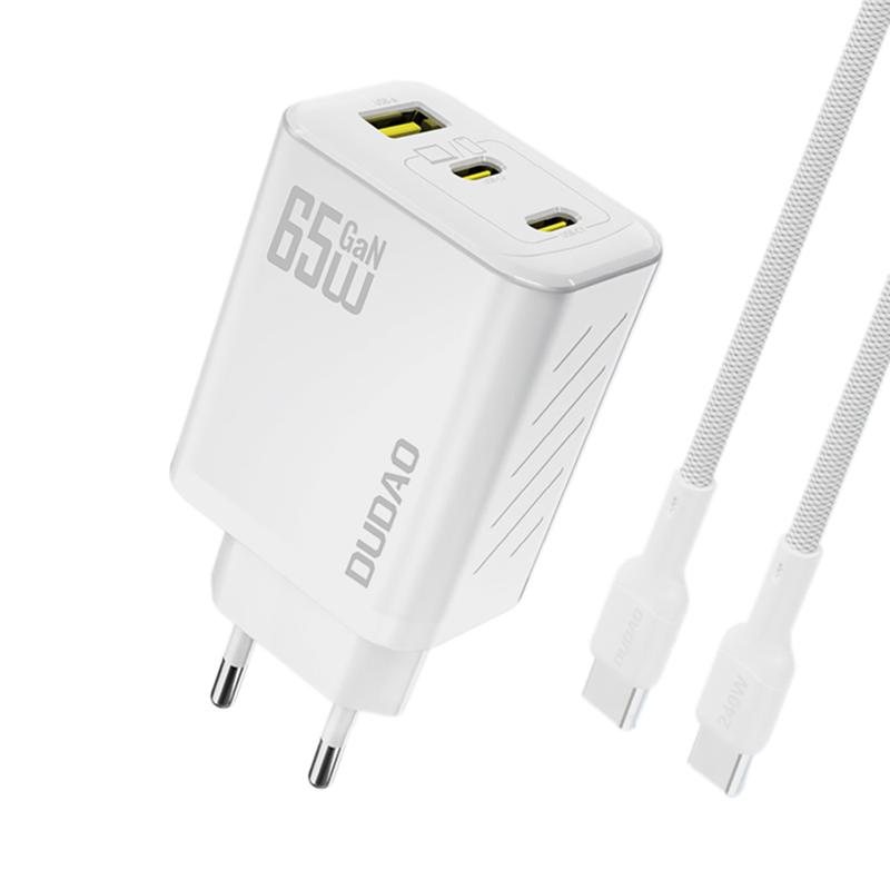 Dudao A29C 65W GaN-vegglader - 3-porters hurtiglader (2× USB-C + USB-A) med 1 m USB-C til USB-C-kabel, PD- og QC-støtte
