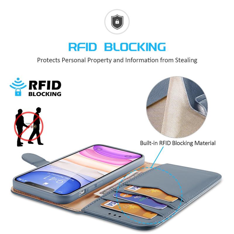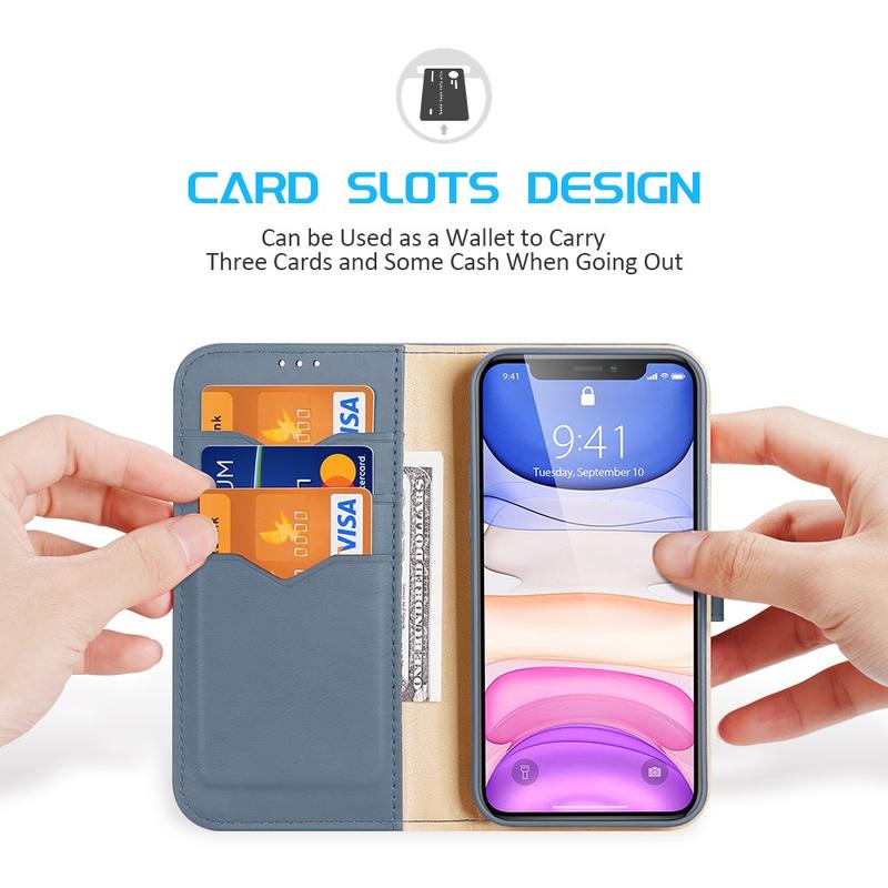 - Den magnetiske lukkingen i lærpungdeksler hjelper med å holde kortene og telefonen din trygge, noe som reduserer risikoen for tap eller tyveri.
