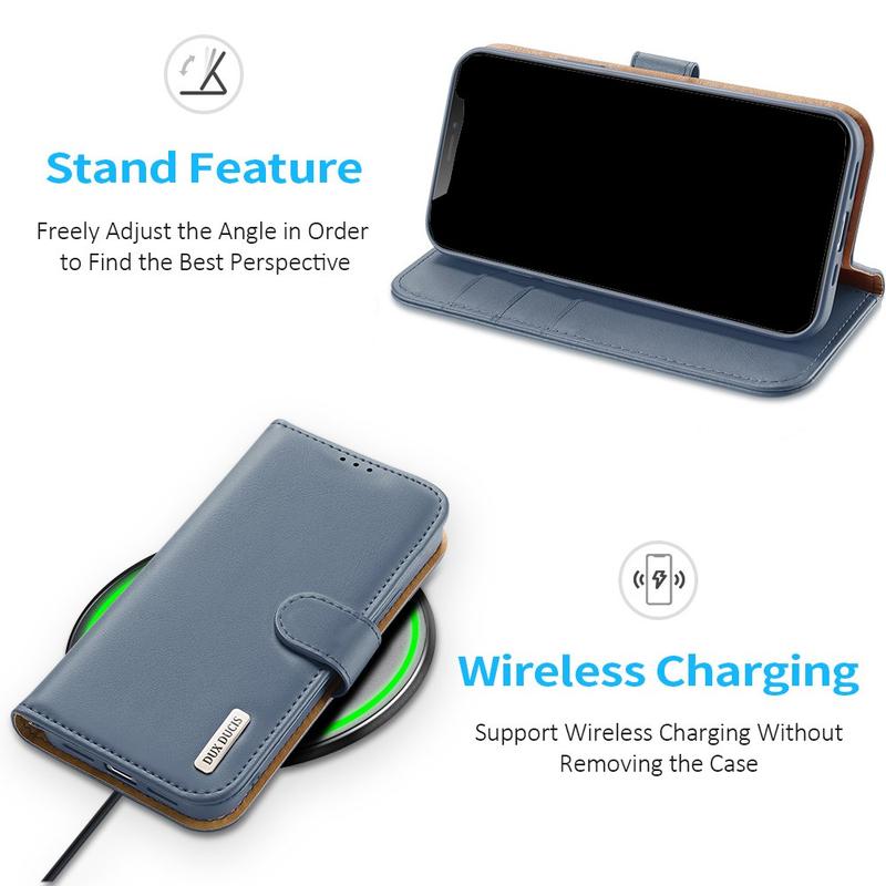 - Stativfunksjonen i lærpungdeksler er en praktisk tillegg som gjør det enkelt å bruke telefonen til underholdning eller arbeid uten å måtte holde den hele tiden.