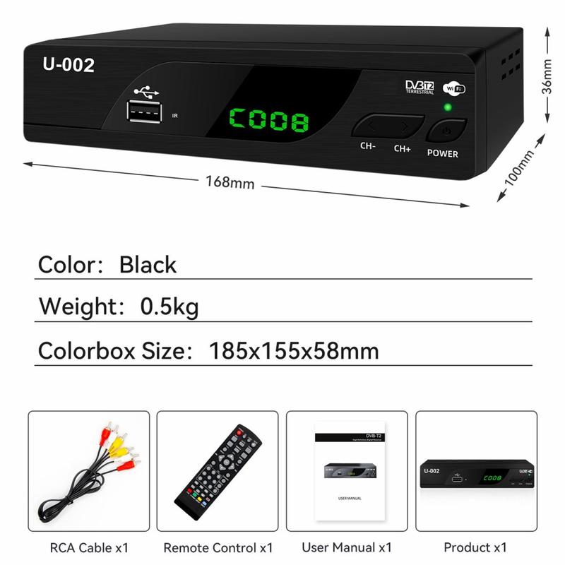 H.264 DVB-T2 U-002 WiFi TV Box er perfekt for alle som ønsker å oppgradere hjemmeunderholdningssystemet sitt til en rimelig pris. Den er ideell for brukere som ønsker å se TV i full HD, strømme innhold på nettet eller bruke én og samme enhet til ulike mediefunksjoner. Med det enkle oppsettet og den trådløse tilkoblingen er denne TV-boksen tilgjengelig for alle, noe som gir en sømløs og hyggelig seeropplevelse.