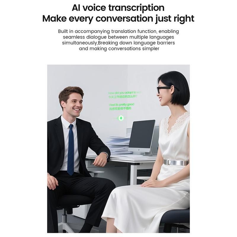 Smarte briller som E02 bruker AI-bildegjenkjenning og sanntidsoversettelse for å bygge bro over kommunikasjonskløfter umiddelbart. Den doble rollen som både kamerabrille og trådløs lydenhet gjør den til en futuristisk alt-i-ett-gadget for både produktivitet og fritid.