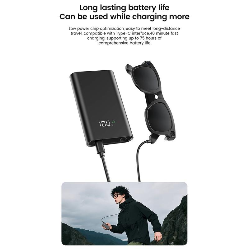 - Lang batterilevetid - 320 mAh batteri med Type-C hurtiglading; opptil 75 timer standby, 10 timer musikk, 3 timer kontinuerlig opptak.