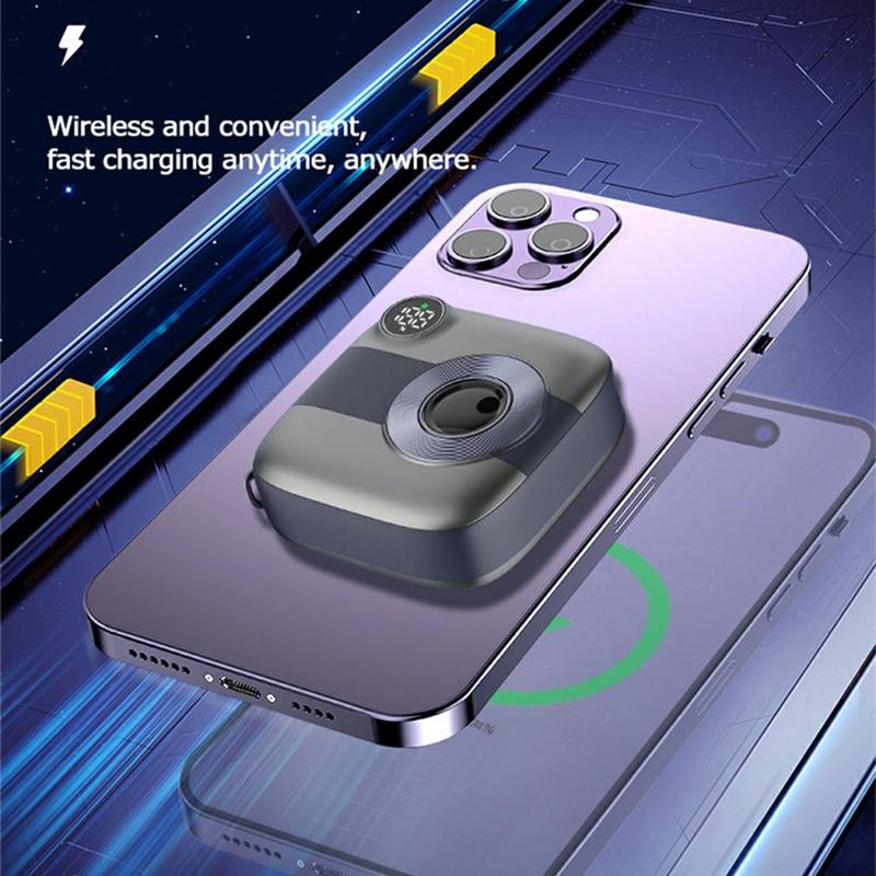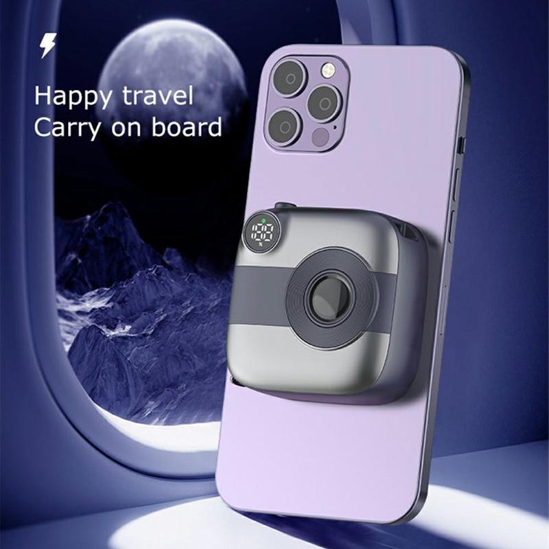 E49B Mini magnetisk strømbank i kameratype på 10000mAh - 20W PD hurtiglading og 15 W trådløs