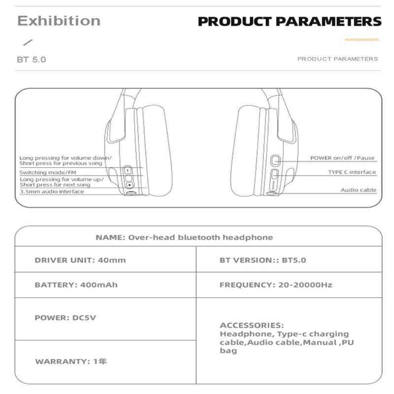 EL-A2 sammenleggbart spillhodesett Graffiti Cool hodetelefon med mikrofon Hodemonterte Bluetooth-øretelefoner - svart