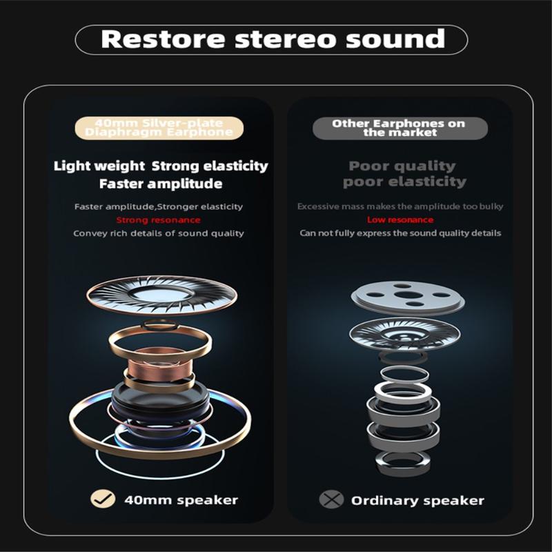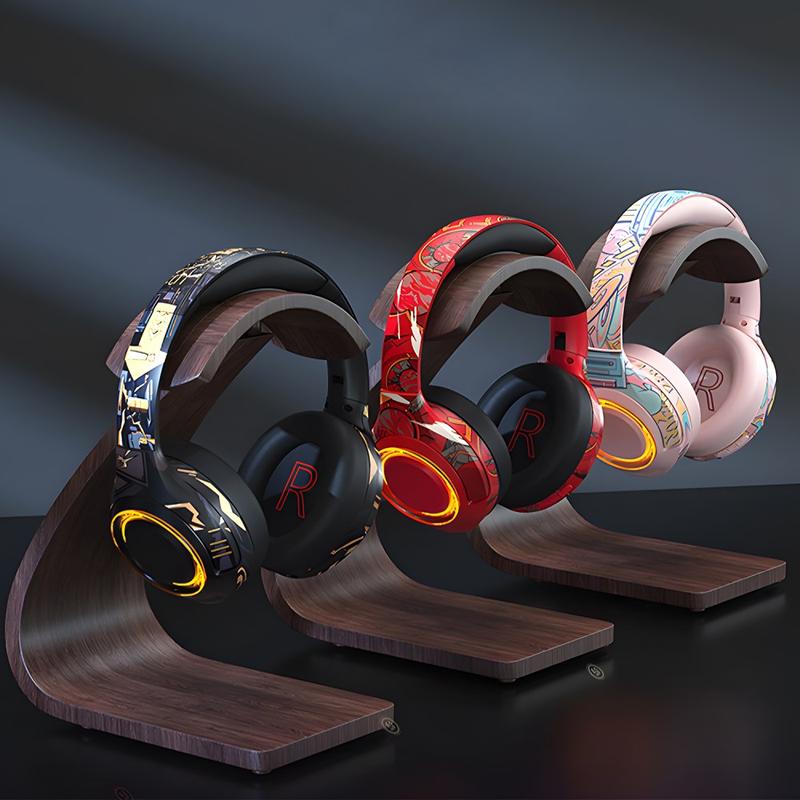Høy lydkvalitet, mikrofon som kan plugges inn, øreklokker i proteinskinn, full støyreduksjon i øret, kul belysning, lang batterilevetid