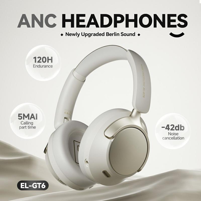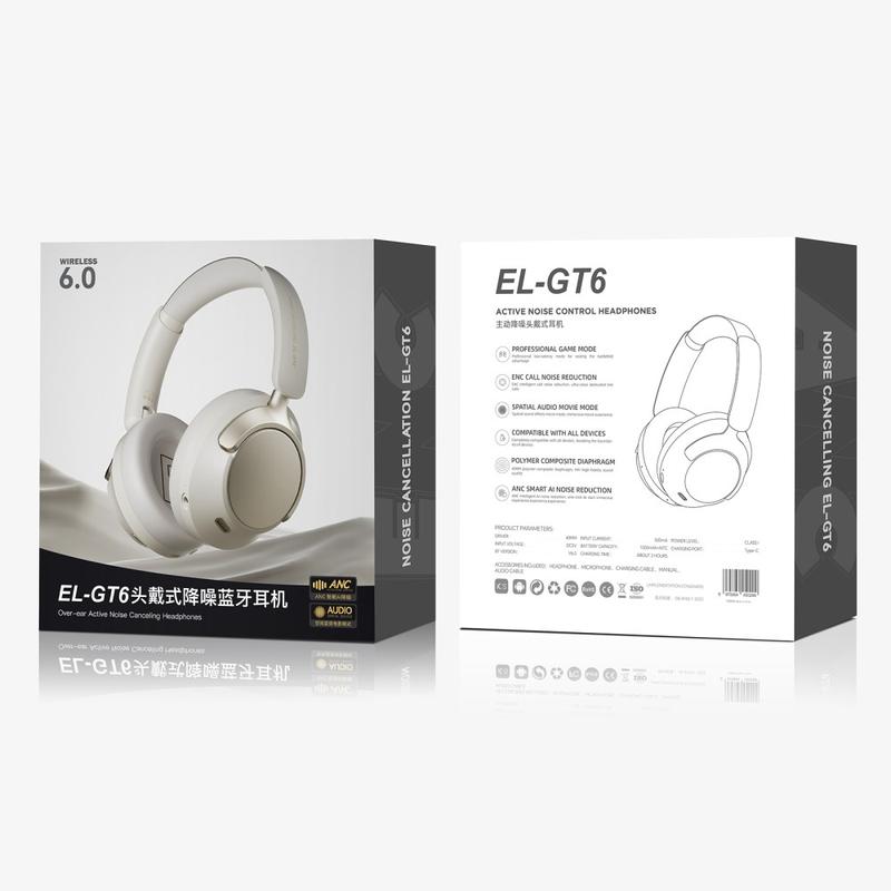 EL-GT6 Over-Ear ANC trådløse hodetelefoner / spillhodetelefoner med Bluetooth 6.0, HiFi-lyd, lav latenstid