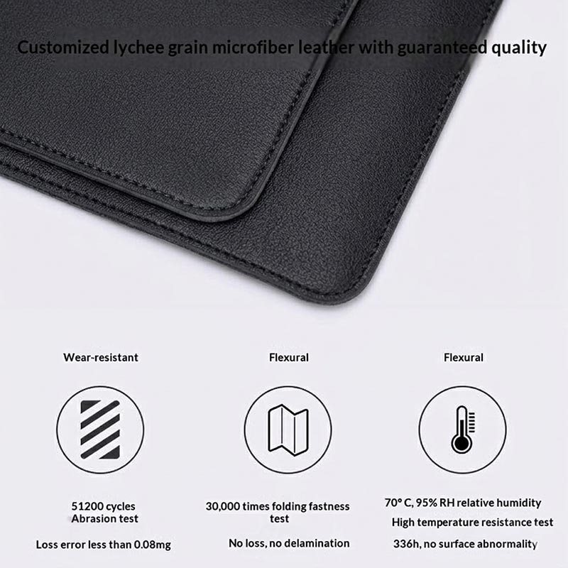 Vesken er laget av slitesterkt polyuretan med en strukturert lychee-finish, og er designet for regelmessig daglig bruk samtidig som den opprettholder et ryddig og profesjonelt utseende. Overflaten er også motstandsdyktig mot lette vann- og oljeflekker, noe som gjør det enklere å tørke den ren og holde den presentabel i daglig bruk.
