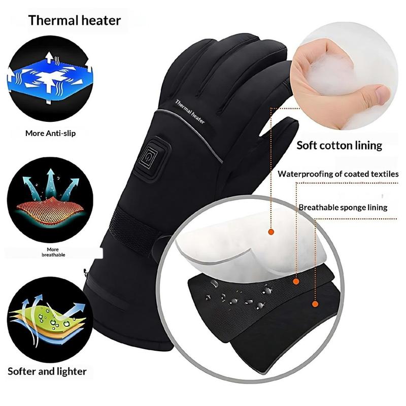 Hold deg varm og komfortabel under vinteraktiviteter med disse elektrisk oppvarmede hanskene, som er designet for å gi varme til hele hånden, både fingrene og håndryggen. Med to oppladbare 5000mAh-batterier, tre temperaturinnstillinger og et vanntett og vindtett ytre lag er de et praktisk valg for utendørs bruk i kalde, våte og vindfulle forhold. Takket være berøringsskjermkompatible fingertupper kan du også bruke telefonen uten å ta av deg hanskene.