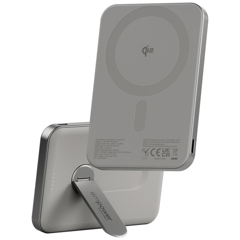 Empower by PanzerGlass magnetisk trådløs powerbank med spinnestativ - 5000mAh Qi2- og MagSafe-kompatibel strømbank