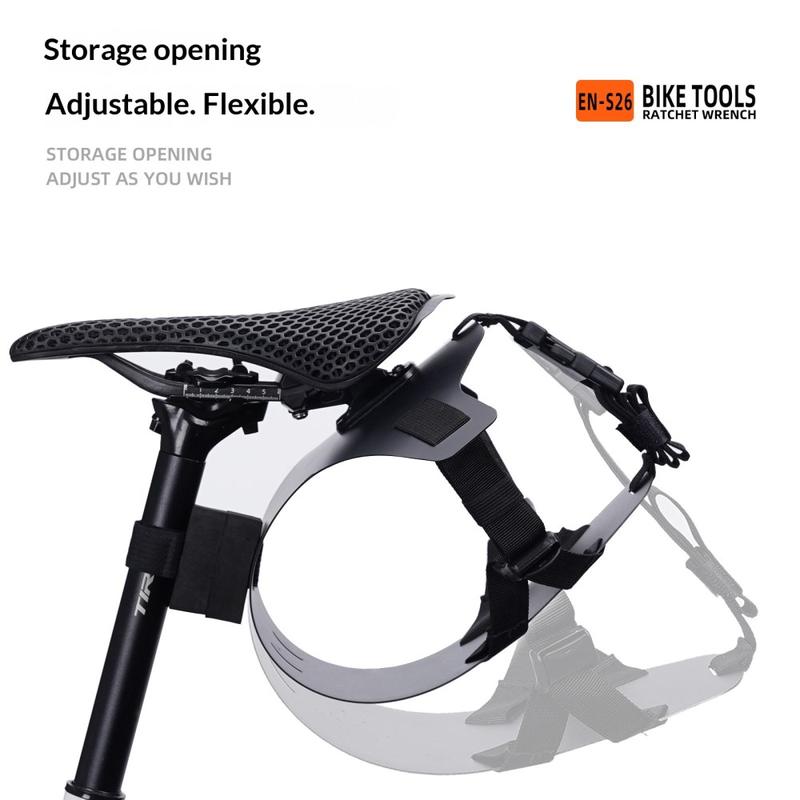 ENLEE EN-S26 er laget av lett, miljøvennlig PP-materiale og gir praktisk bærehjelp uten å legge for mye ekstra vekt på sykkelen. Den justerbare oppbevaringsåpningen er kompatibel med forskjellige bakvesker under 54 cm i lengde og under 12 liter i kapasitet, noe som gjør den til et fleksibelt valg for et bredt utvalg av sykkelveskeoppsett.