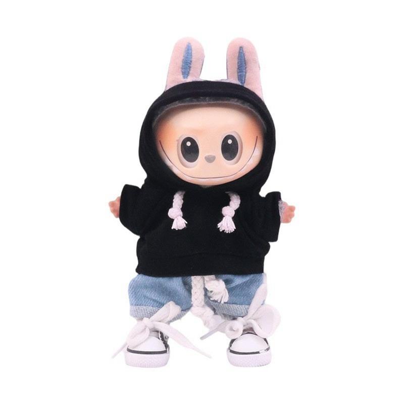 Ensfarget hettegenser til 17cm Labubu minifigur - hettegenser i myk bomullsblanding, lettkledd design