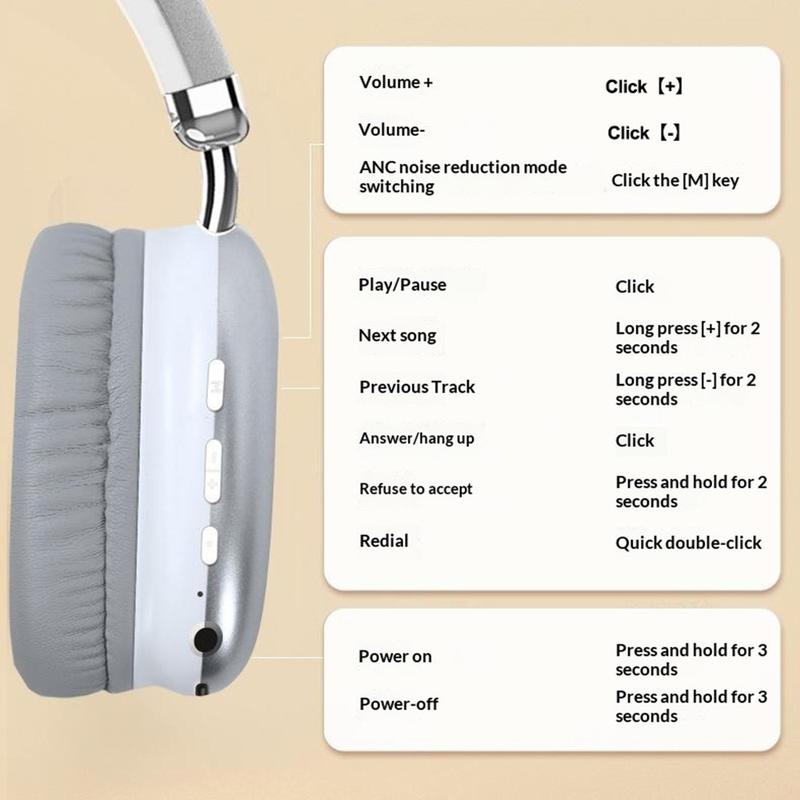 Erazer EM-Z03 trådløse hodetelefoner med aktiv støyreduksjon (ANC), Bluetooth 5.4, HiFi-lyd og 30 timers batterilevetid