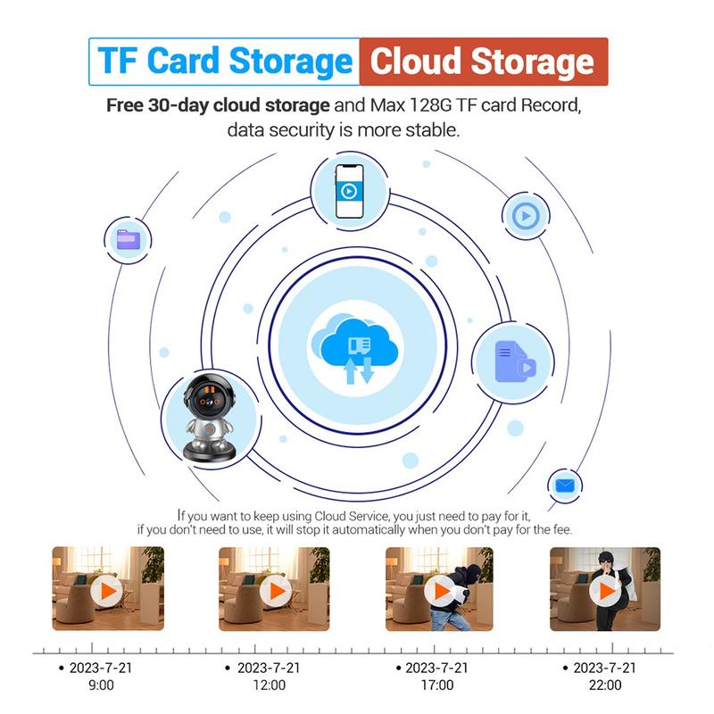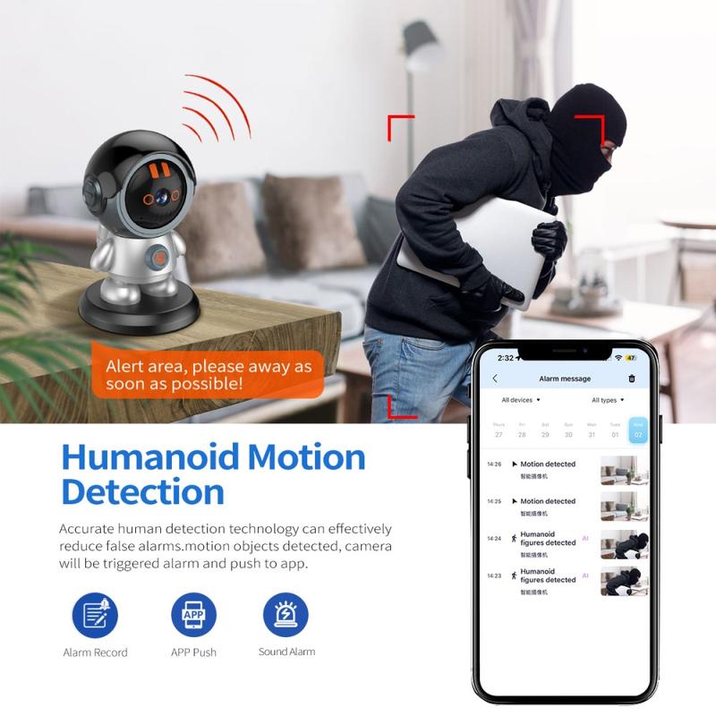 - AI-verktøysett: humanoiddeteksjon, bevegelsessoner, automatisk sporing, lydalarmer, app-push