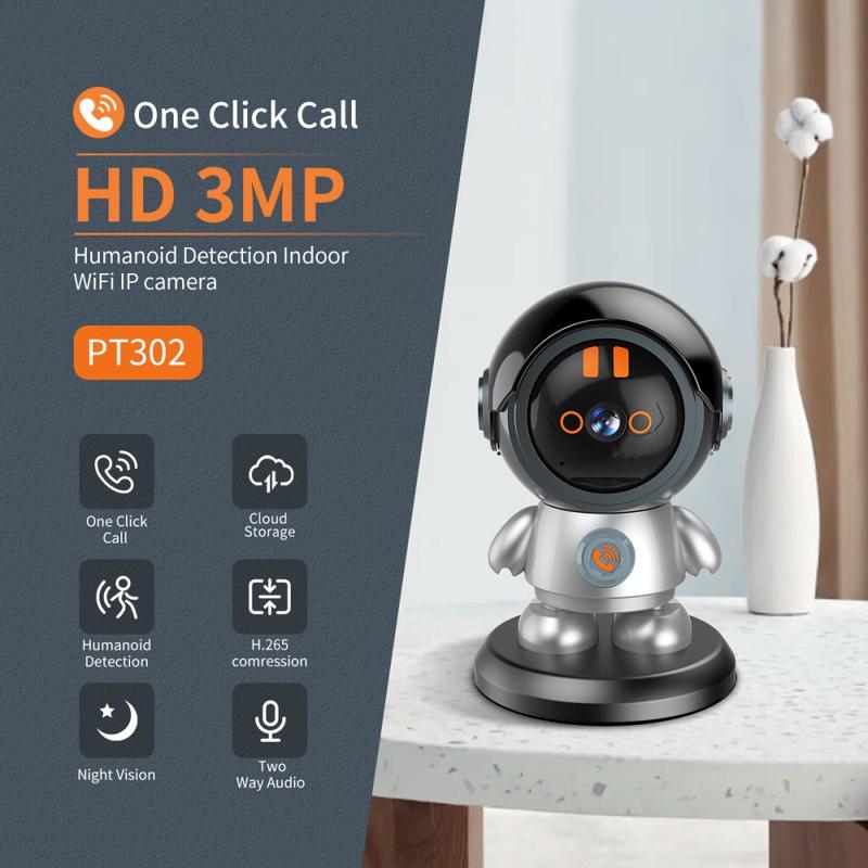 Et roterende vakttårn, en intercom og en alarmsirene får plass i et håndflatestort skall. PT302 gir deg skarp 1296P-video, øyeblikkelige telefonsamtaler fra kameraknappen og panorering og vippekontroll som dekker nesten hele rommet.
