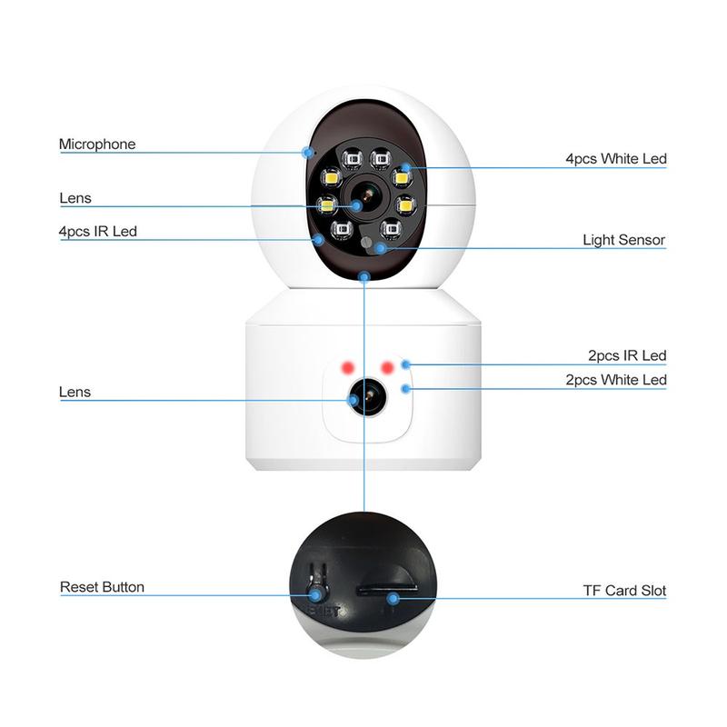 Intelligent dual-light-modus, 6 infrarøde lysdioder + 6 hvite lysdioder, infrarød avstand opptil 10 meter