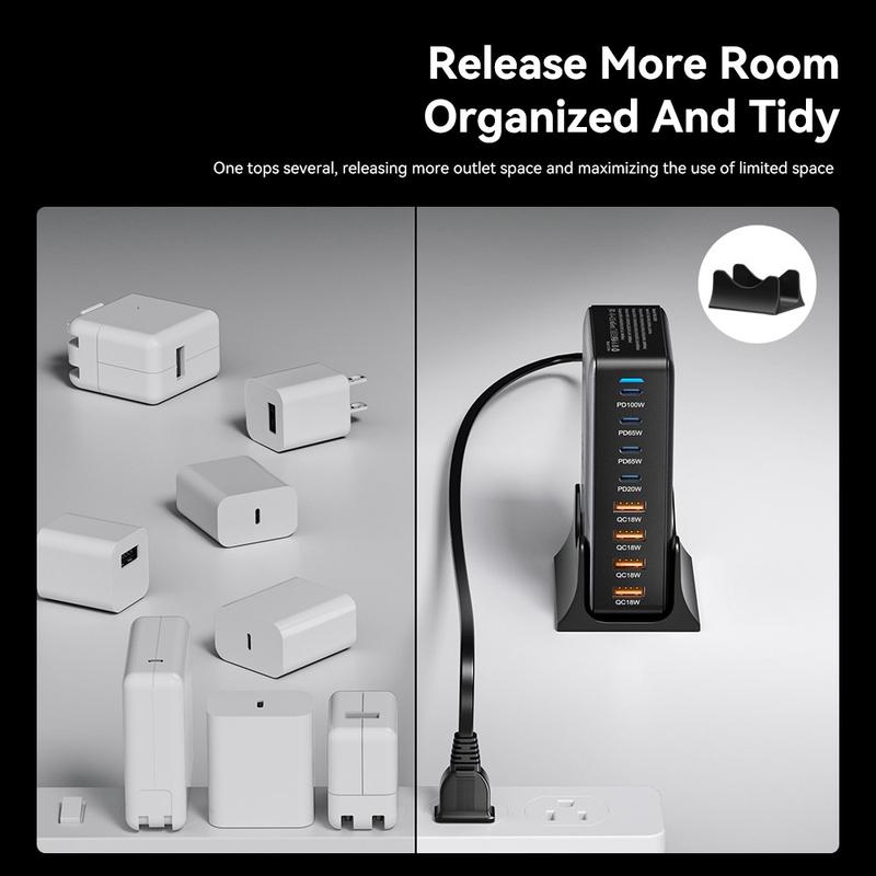 - 8 ladeporter: Fire USB-porter og fire Type-C-porter for allsidige ladealternativer.