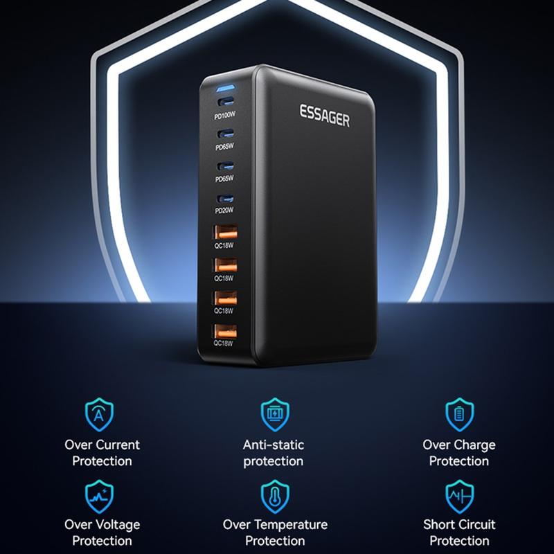 Essager 320W GaN Multi-Port Desktop Charger er den ultimate strømhuben for alle enhetene dine. Denne kraftige laderen har fire USB- og fire Type-C-porter, og støtter effektiv hurtiglading av flere enheter samtidig. Med avansert GaN-teknologi (Gallium Nitride) gir den pålitelig og effektiv lading samtidig som den har en kompakt design. Denne laderen er perfekt for hjemmet, kontoret eller på reise, og sørger for at all viktig elektronikk enkelt får strøm.