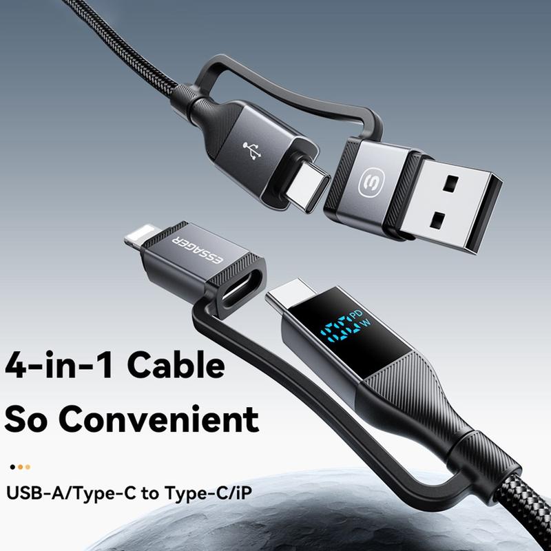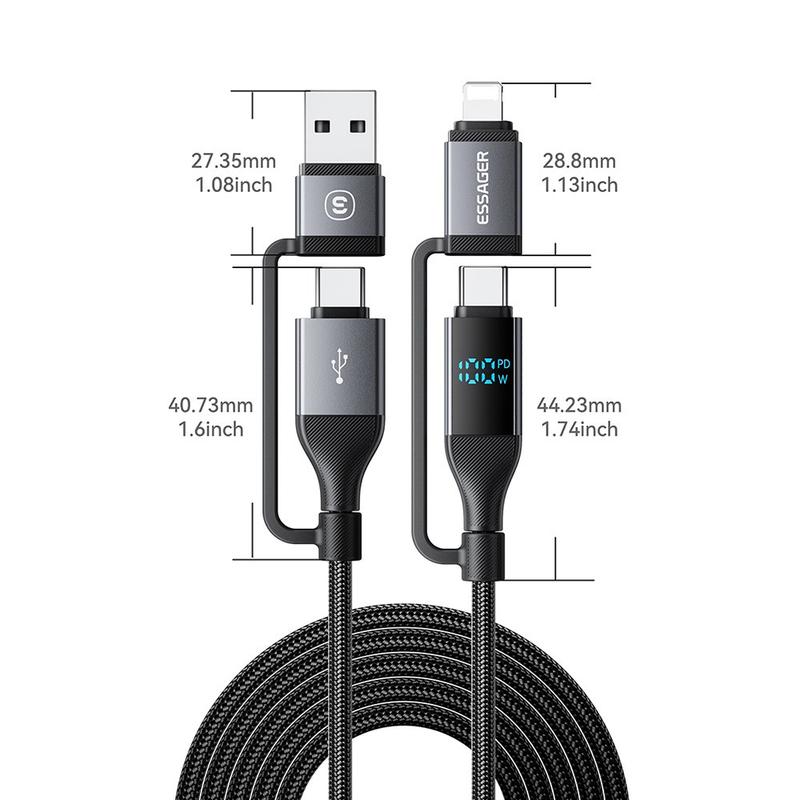 Essager 4-i-1 100W hurtigladekabel med strømdisplay - 2m, 480 Mbps