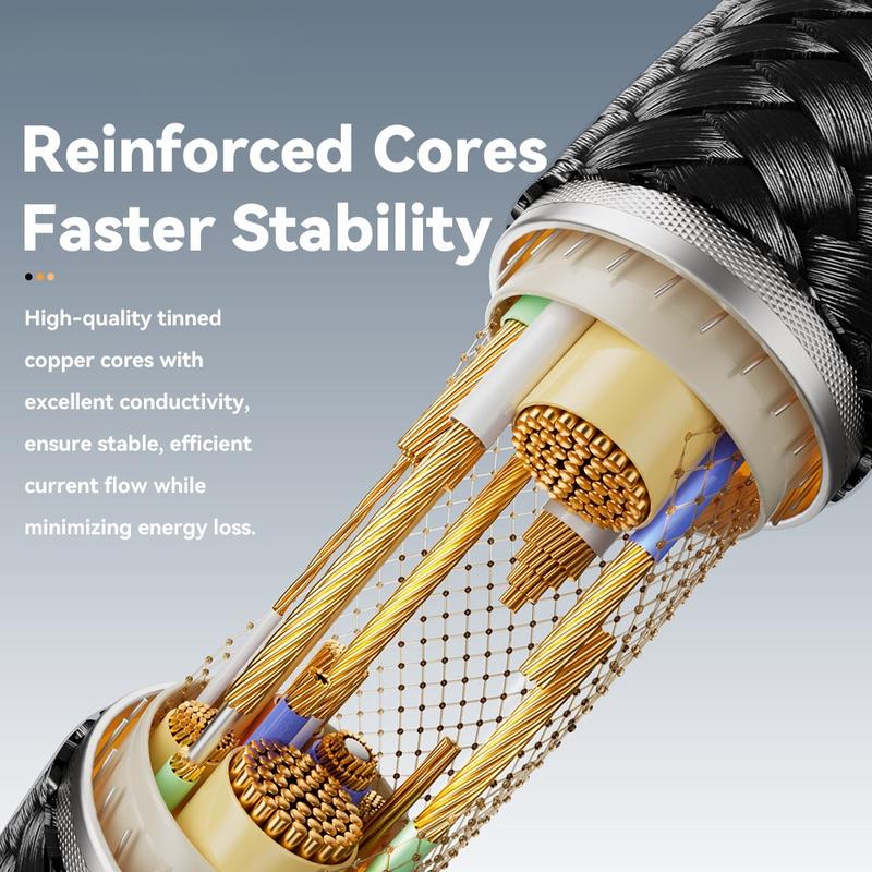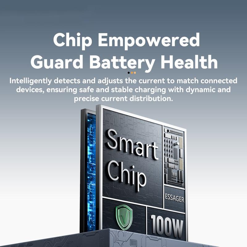 De fleste multitips har en maksgrense på 15-20 W; Essagers E-marker pluss 5-ampere kjerne håndterer hele 100W PD-omfanget. Den levende skjermen fjerner gjetning, og den forsterkede fletten motstår kuffertvridninger som dreper billige PVC-ledninger.