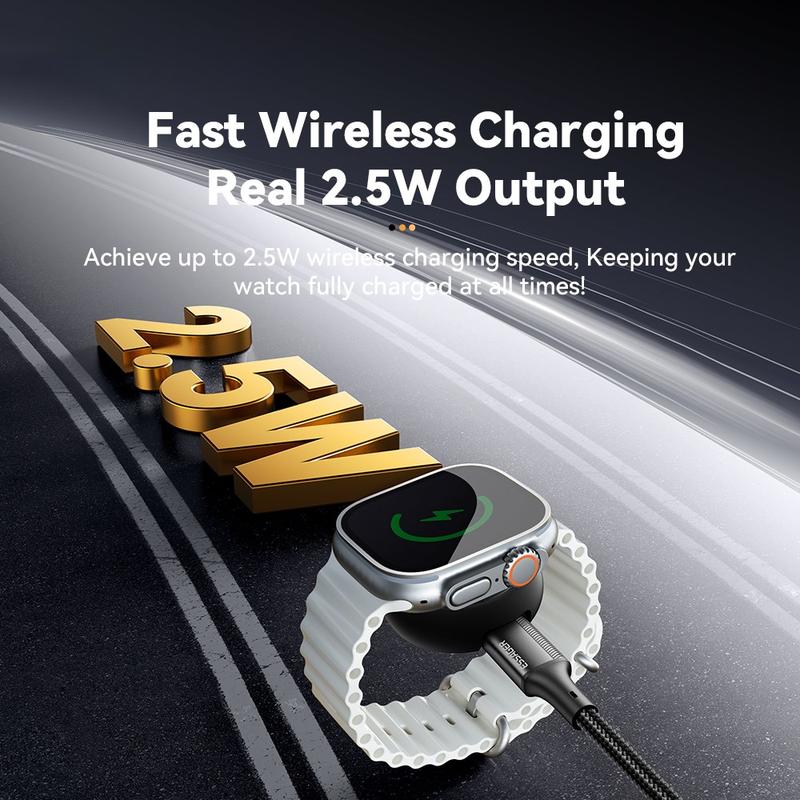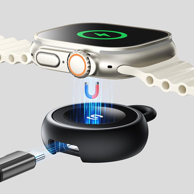 Essager Magnetic Wireless Charger tilbyr rask og praktisk lading for Apple Watch. Med sin magnetiske design festes den sikkert til klokken, mens Type-C-hunnporten sørger for bred kompatibilitet og rask strømoverføring. Denne elegante, bærbare laderen er perfekt til hverdagsbruk eller på reise.