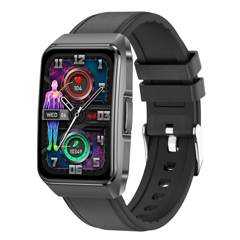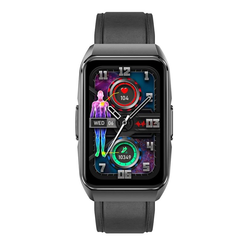 ET650 Vanntett smartklokke med kroppstemperatur, helsemonitor og Bluetooth-samtaler - lær- og silikonrem