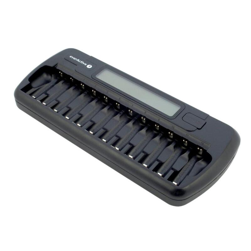 everActive NC 1200 har hele 12 uavhengige ladekanaler for NI-MH-batterier i størrelsene R6/AA eller R03/AAA, og hver celle lades individuelt. Det gjør det mulig å lade 12 oppladbare R6/AA- eller R03/AAA-batterier i en hvilken som helst konfigurasjon/kombinasjon, uansett kapasitet og produsent.