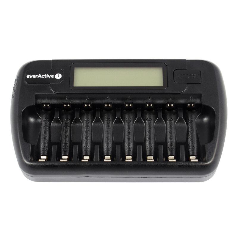 EverActive NC-800 batterilader for 8x AAA/AA oppladbare batterier - med billader og strømadapter med EU-kontakt