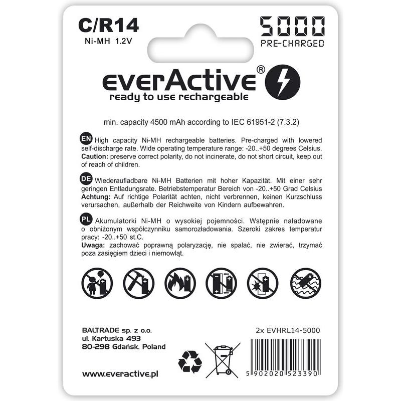 EverActive Professional Line EVHRL14-5000 Ni-MH R14/C oppladbare batterier 5000mAh - 2 stk.