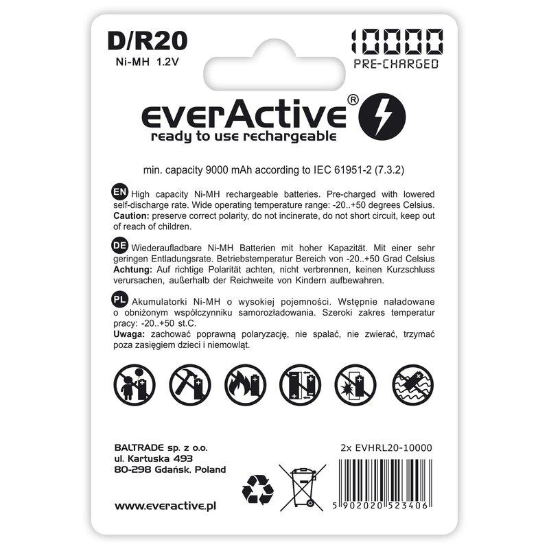 EverActive Professional Line EVHRL20-10000 Ni-MH R20/D oppladbare batterier 10000mAh - 2 stk.