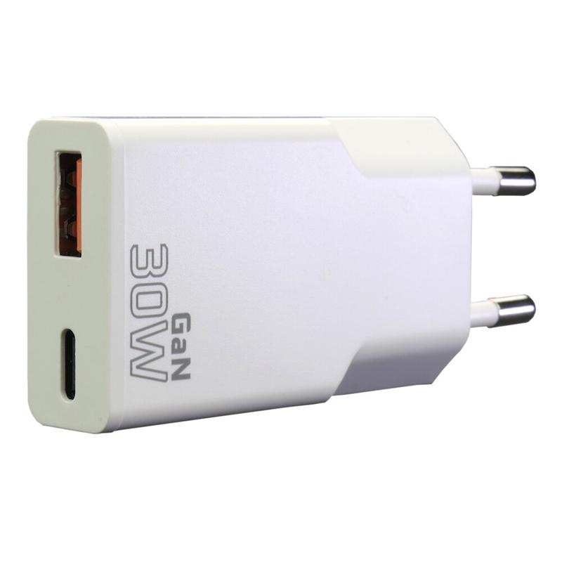 Laderen er utstyrt med en USB-C PD-port og en USB QC3.0-port, og leverer en total utgangseffekt på 30 W. Du kan lade to enheter samtidig - smarttelefoner, nettbrett, kameraer, ultrabooks eller powerbanks - raskt og pålitelig.